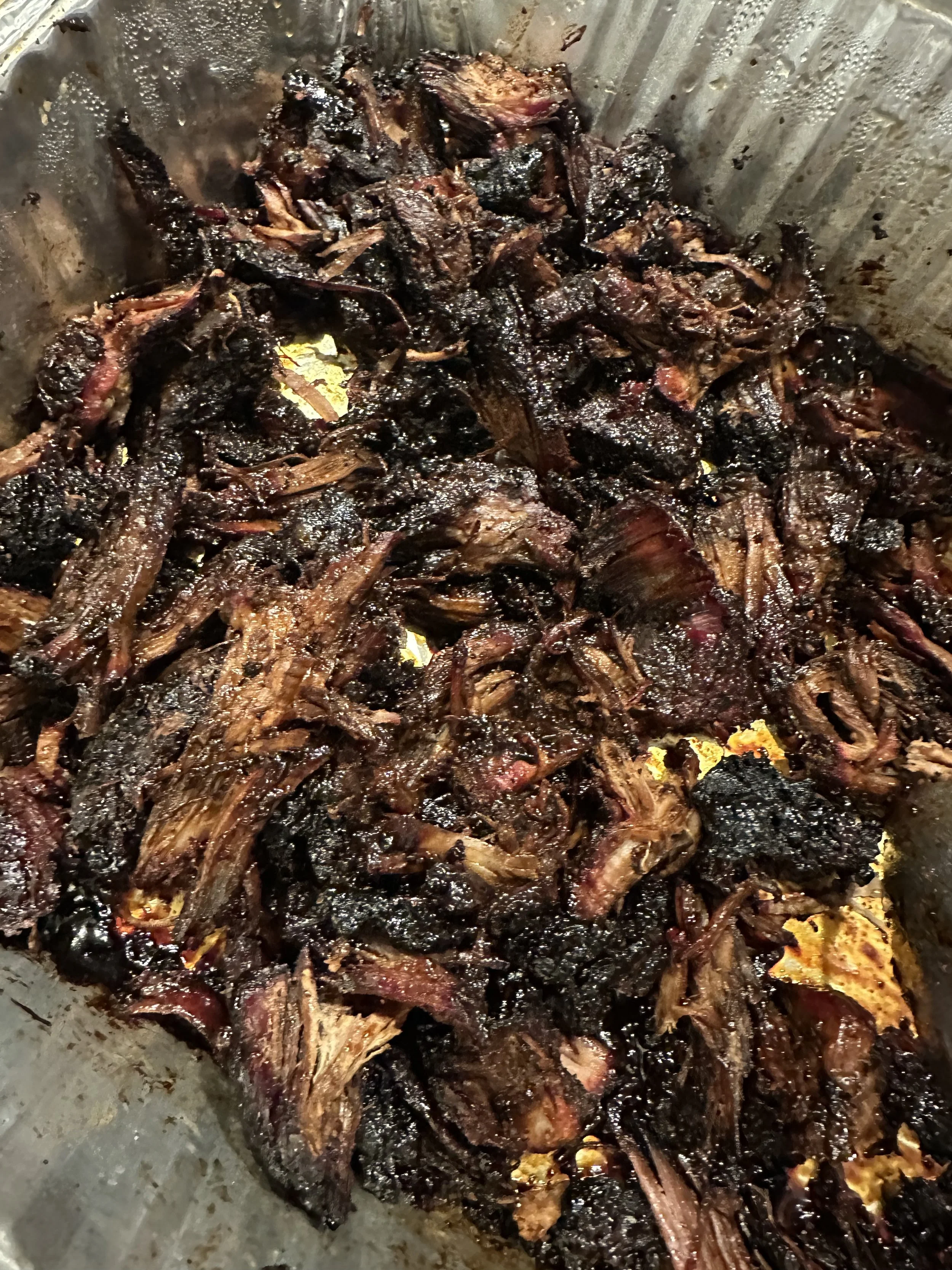 Pull it off the smoker and pull it apart. Serve on a bun with some coleslaw, It is so delicious!
